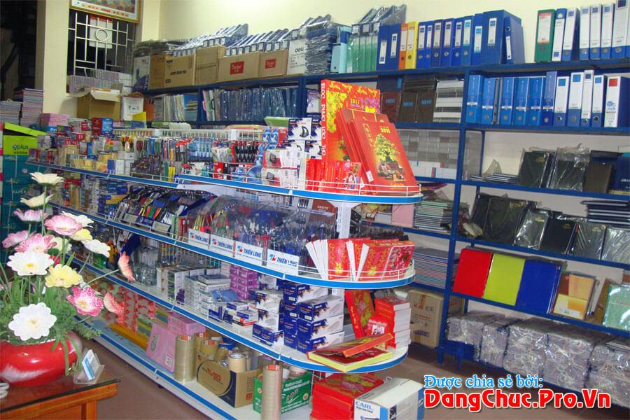 Nếu là cửa hàng bán lẻ thì cách bài trí sản phẩm sẽ rất cần thiết và quan trọng. Bạn cần thiết kế tủ kệ phù hợp để trưng bày, đảm bảo mục tiêu dễ tìm, dễ thấy, dễ lấy, dễ  mua. Đối với cửa hàng nhỏ bạn nên có 2 giá chạy dài bên cạnh tường nhà, một giá ở đằng sau, và một giá ở giữa nhà, tùy từng nhà ta có thể để thành nhiều giá nhưng mỗi giá các bạn lên để tầm 1.5m- 2m vì sau này mình vận chuyển cho dễ. Tủ kính đựng văn phòng phẩm có thể để ở giữa nhà hoặc trước cửa. Hãy tận dụng không gian bài trí giúp khách hàng cảm thấy thoải mái mà vẫn đáp ứng được nhu cầu tìm kiếm sản phẩm.
