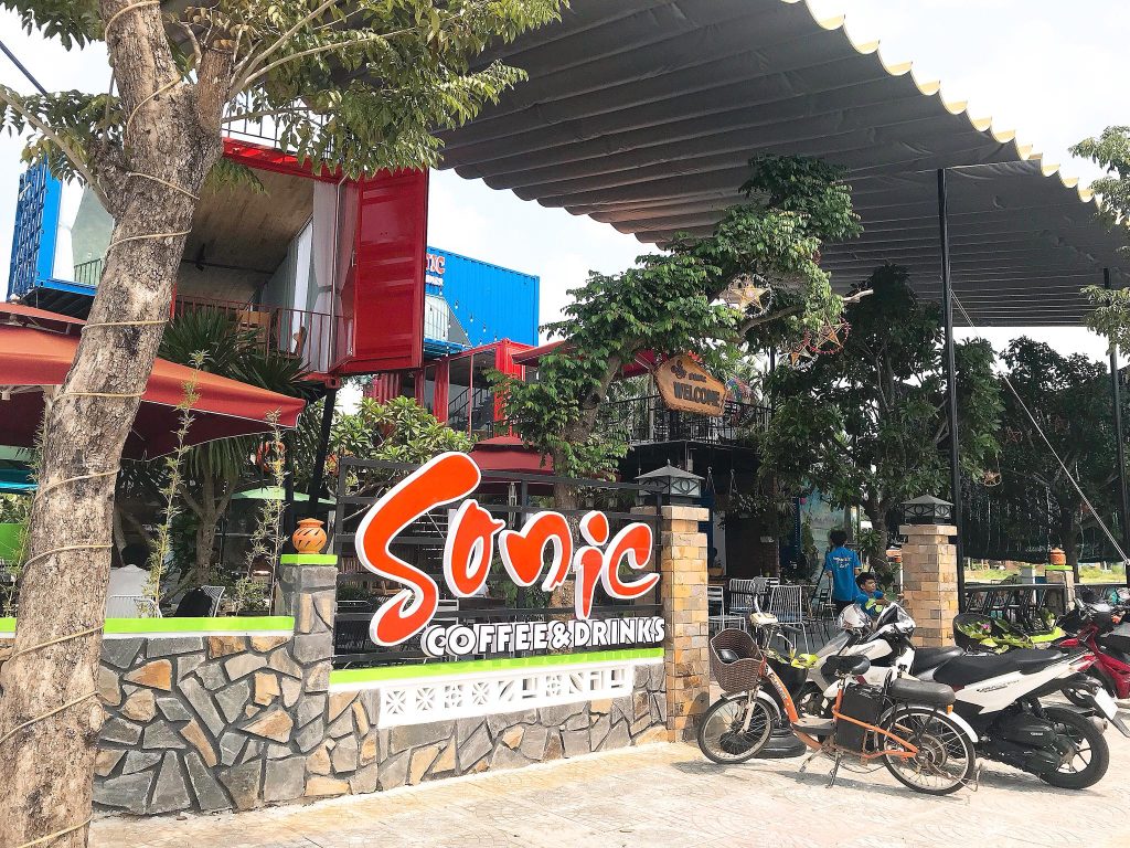 Quán cafe SONIC Container tại Nam Phước, Duy Xuyên, Quảng Nam, nổi bật với thiết kế độc đáo sử dụng thùng container, tạo nên không gian mới lạ và thu hút. Việc tận dụng container không chỉ mang lại vẻ ngoài ấn tượng mà còn giúp tiết kiệm chi phí xây dựng và dễ dàng di chuyển khi cần thiết.